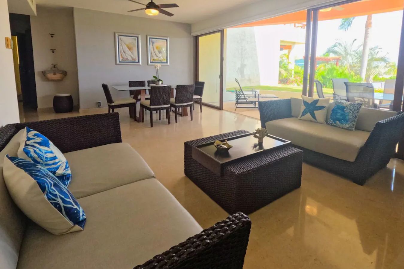 Encontrarás 8 albercas, restaurante, jardines con juegos infantiles, dos canchas de tenis, SPA, gym, palapas con cocina totalmente equipada, garage para 1 automóvil, playa privada, andador a lo largo de la playa, funicular para acceder a la playa, seguridad 24/7.